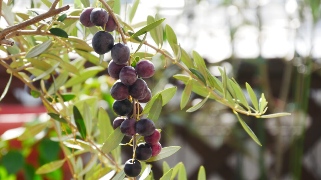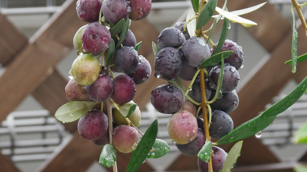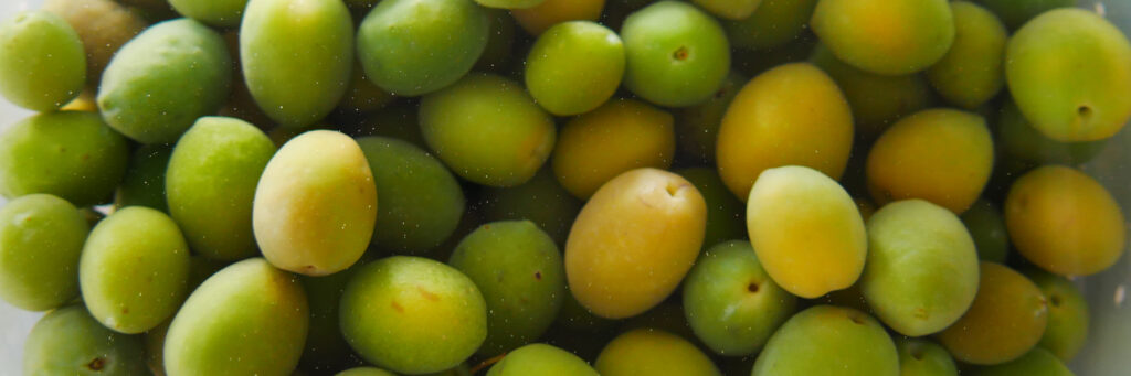 グリーンオリーブの実の収穫とあく抜き、塩漬けについて説明します。